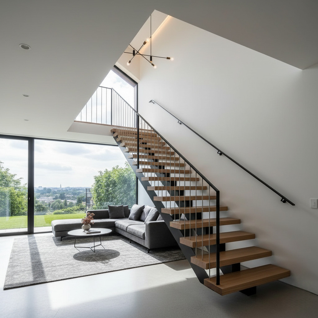 Металлокаркасные лестницы устанавливаются как в жилых помещениях: домах, коттеджах, двухуровневых квартирах,