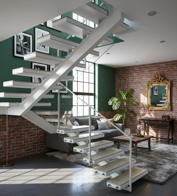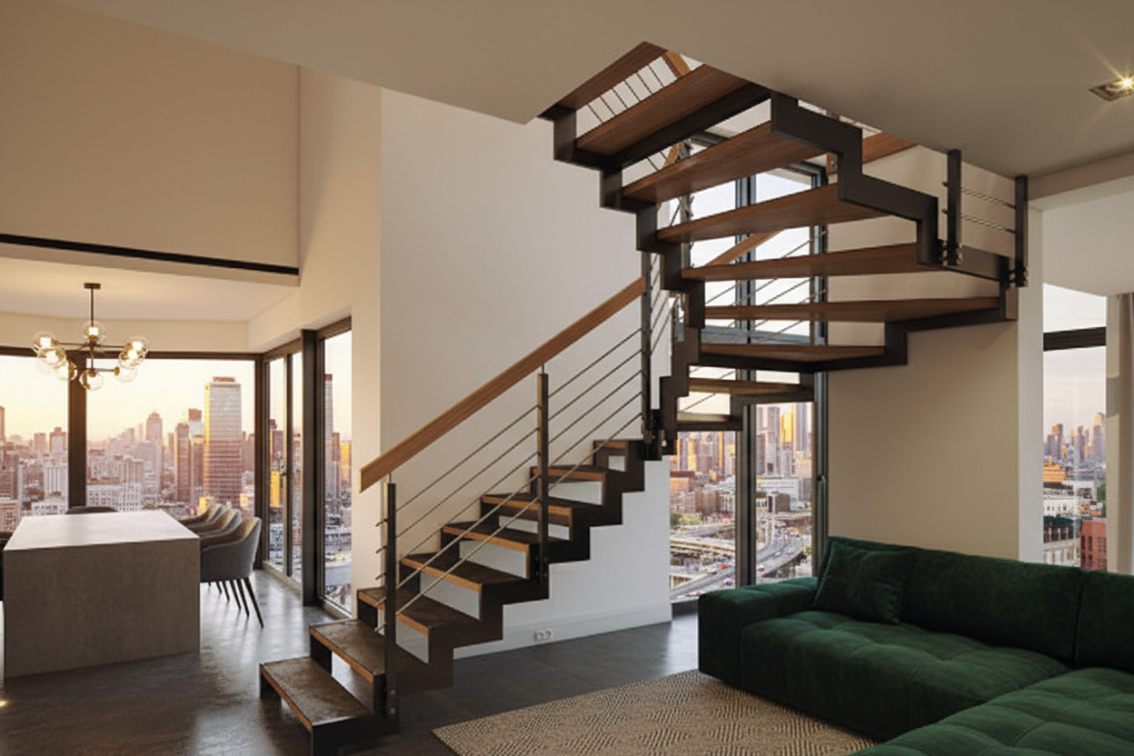 Металлокаркасные лестницы устанавливаются как в жилых помещениях: домах, коттеджах, двухуровневых квартирах,