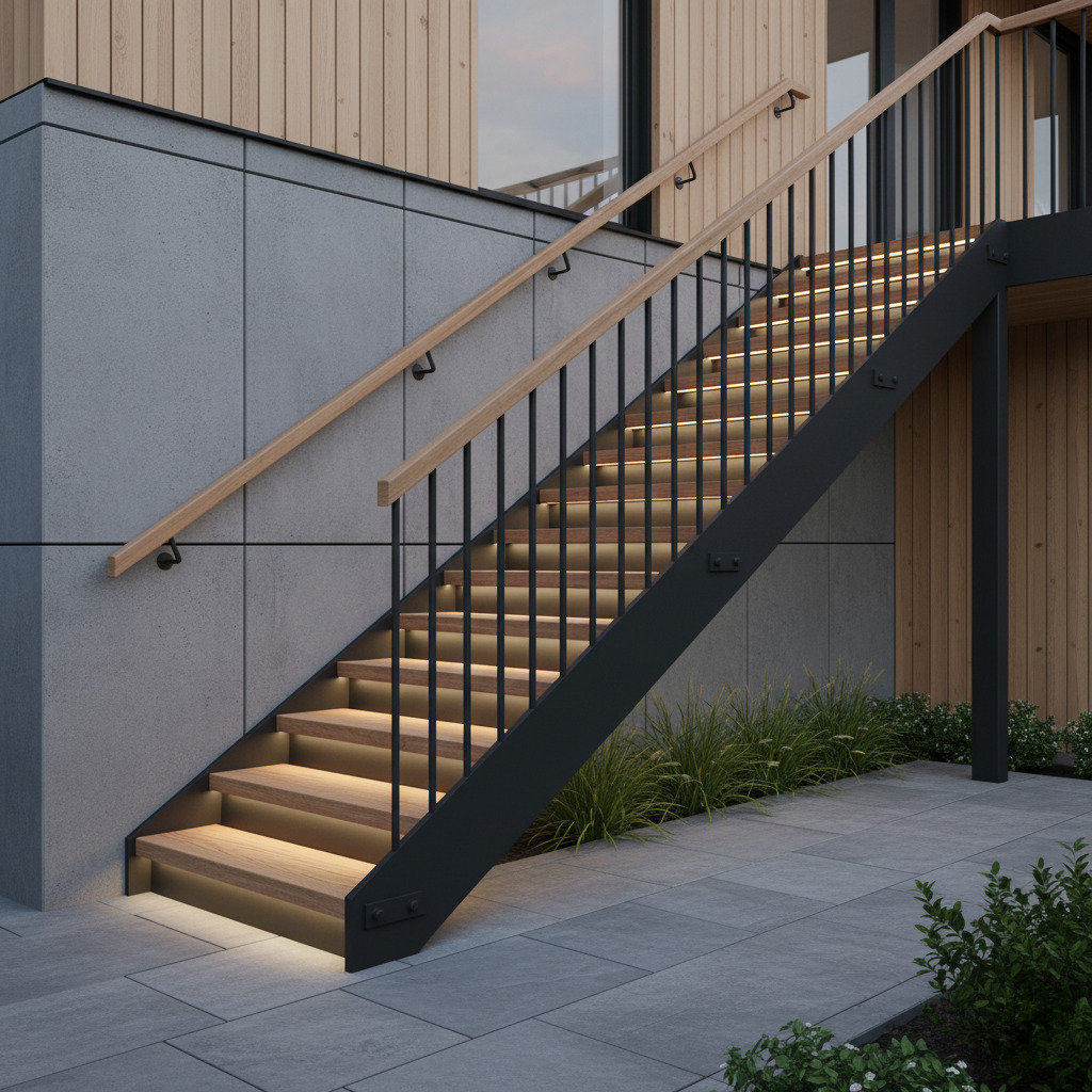 Мы изготавливаем лестницы на металлокаркасе, учитывая материалы вашего дома, прочность и визуальное оформление.